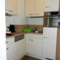 - Die Einbauküche verfügt über einen Herd, Backofen, Kühlschrank, Wasserkocher, Kaffeemaschine, Toaster, Spülmschine und Geschirr.
