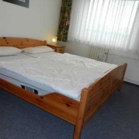 - Das Schlafzimmer verfügt über ein Doppelbett und einen Kleiderschrank.